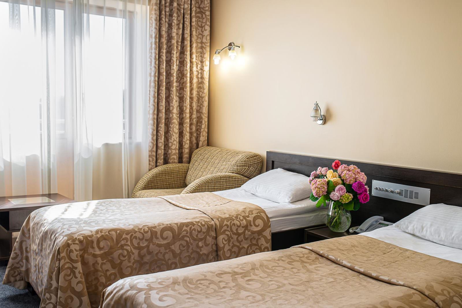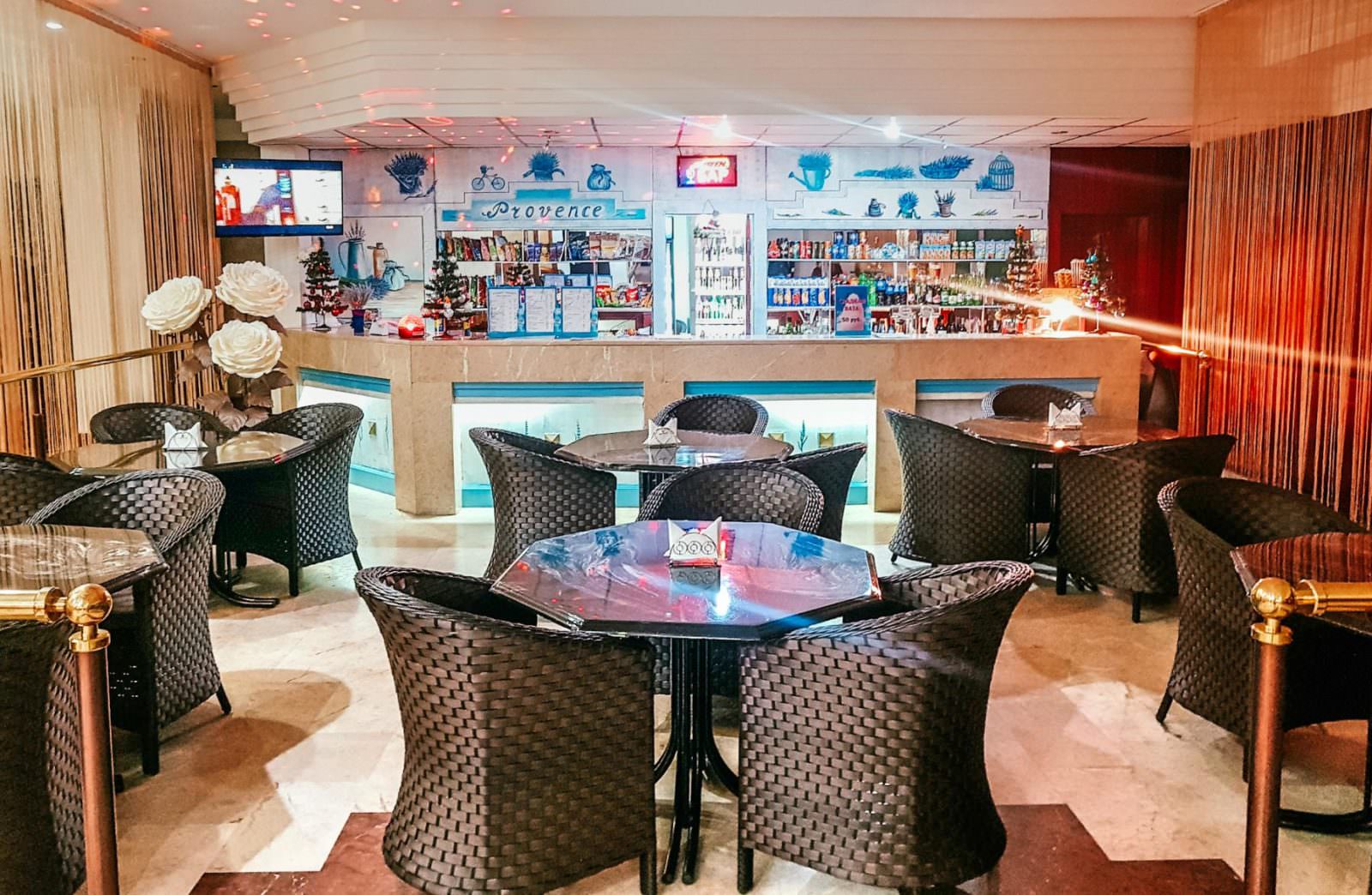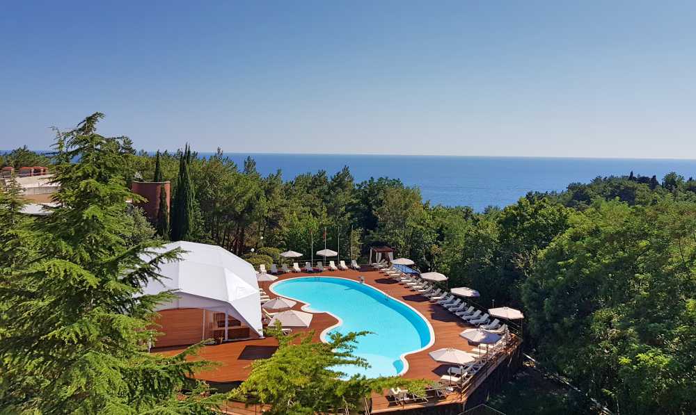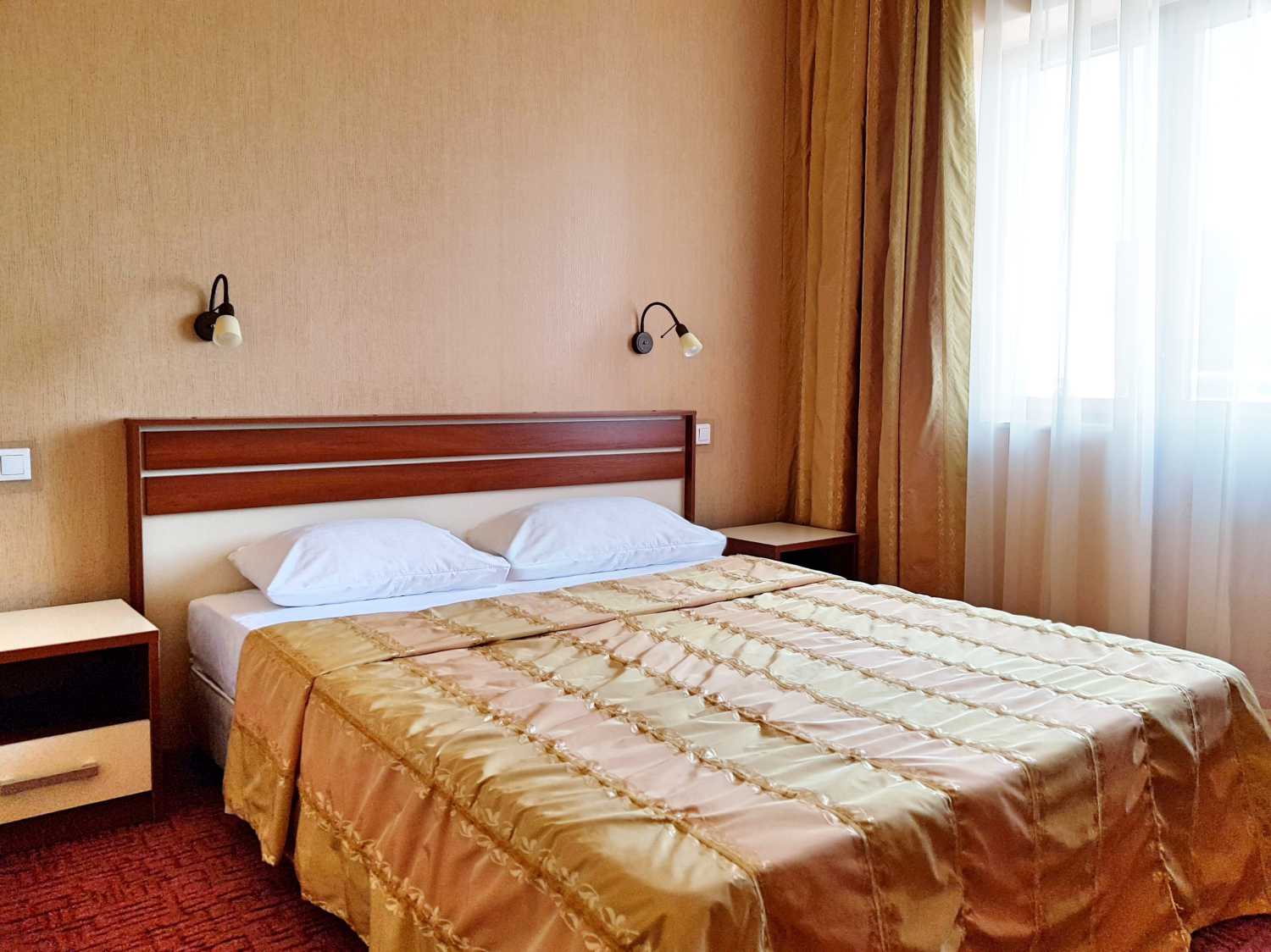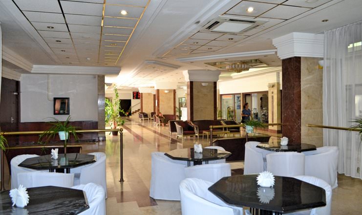 Гостям предлагают разместиться в 6–этажном здании, где их ждут 245 номеров различной категории. Кроме того, имеются современные спортивный и тренажерный залы, крытый и открытый бассейны для взрослых и детей, СПА-центр, банный комплекс, боулинг, бильярд, мини-гольф, рестораны и бары, ночной клуб. Любители спорта также оценят наличие открытых спортивных площадок на территории. Питание происходит по системе «шведский стол», где гости могут выбрать разнообразные блюда и домашнюю кухню.